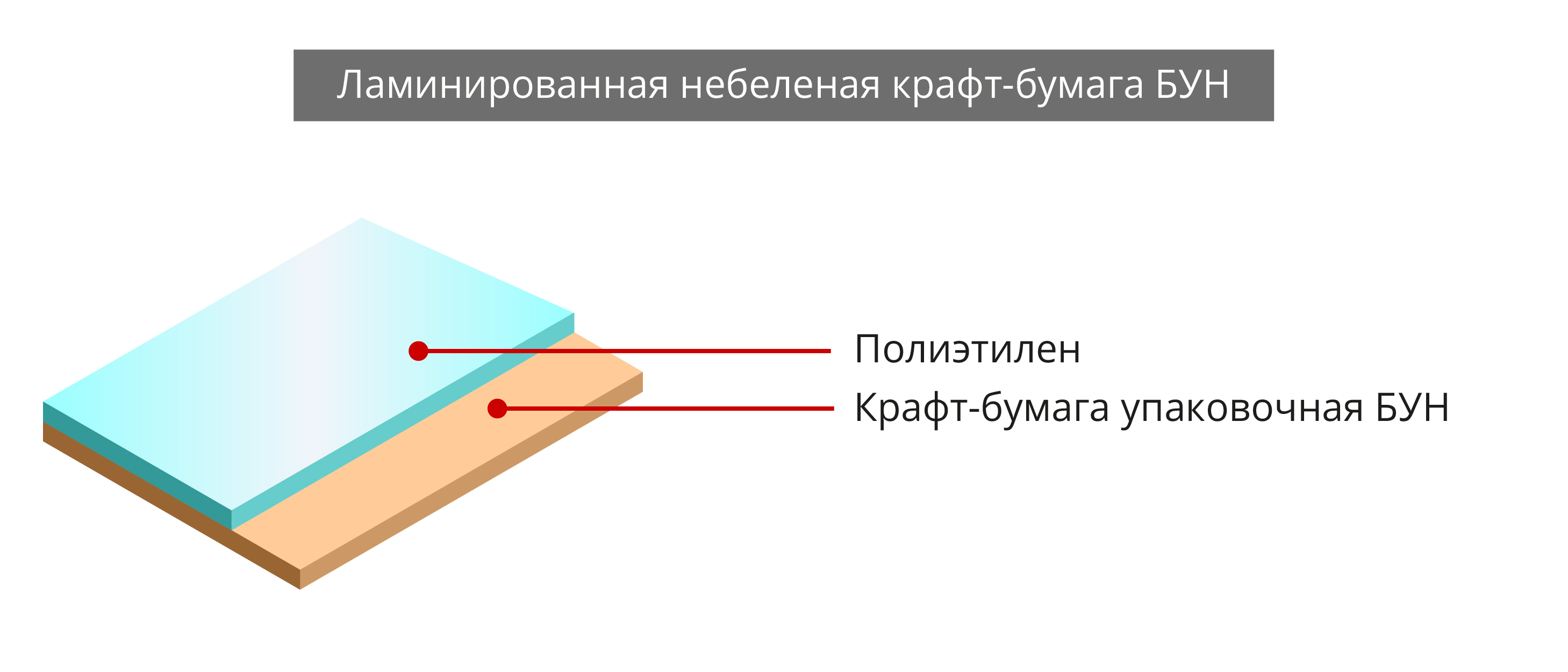 Ламинированная небеленая упаковочная крафт-бумага БУН – бумажная основа с полиэтиленовым покрытием. В качестве основы используется целлюлозная небеленая упаковочная бумага БУН.