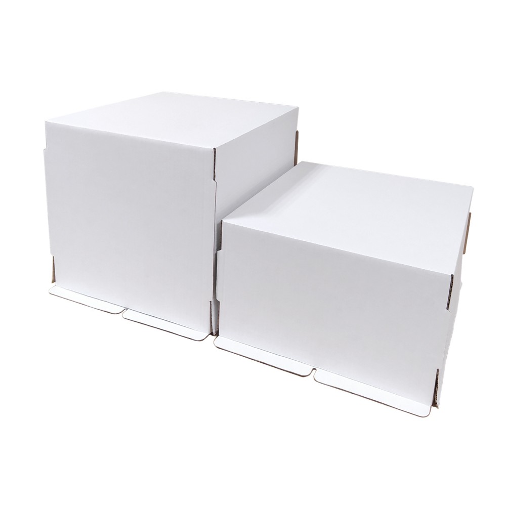 Коробка под торт без окна - это прочная коробка самосборной конструкции. Изготовлена из гофрированного картона с белым лицевым слоем. Внутренняя поверхность коробки цвета «крафт». Коробка состоит из двух деталей: плоского дна и куполообразной крышки прямоугольной формы. Поставляется в виде плоских заготовок, из которых легко, в течение нескольких секунд, собрать изделие непосредственно на месте упаковки.