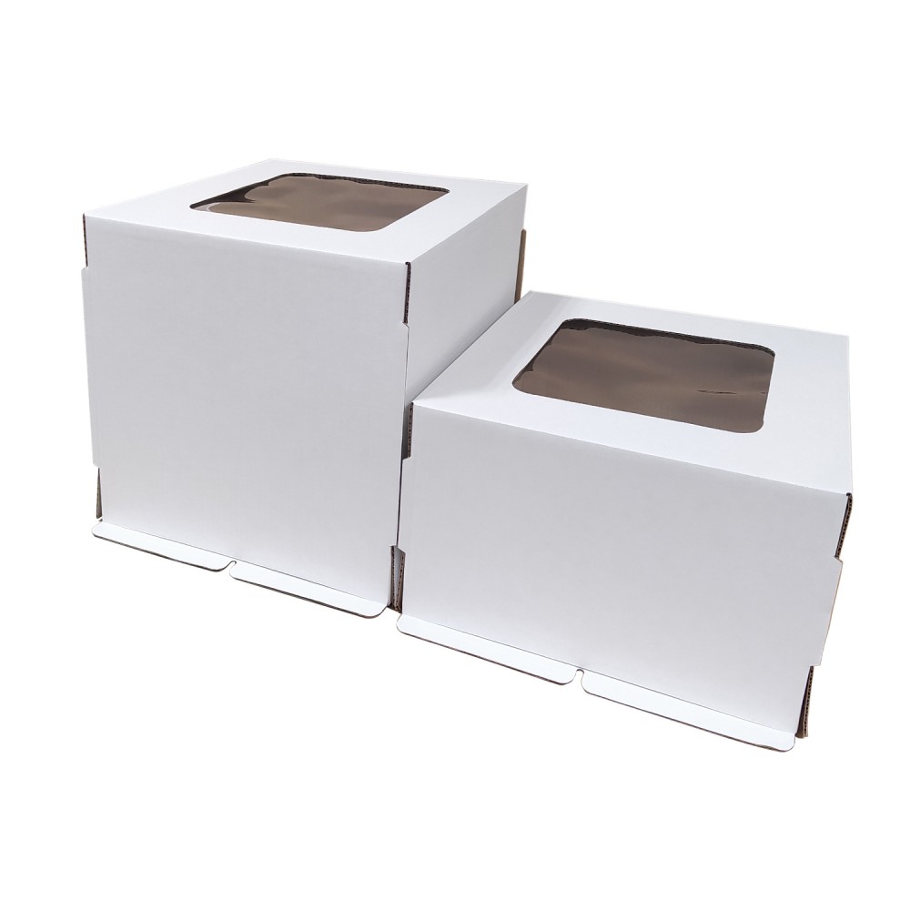 Коробка под торт с окном - это прочная коробка самосборной конструкции. Изготовлена из гофрированного картона с белым лицевым слоем. Внутренняя поверхность коробки цвета «крафт». Коробка состоит из двух деталей: плоского дна и куполообразной крышки прямоугольной формы. Крышка коробки имеет прозрачное окно, благодаря которому можно рассмотреть содержимое. Поставляется в виде плоских заготовок, из которых легко, в течение нескольких секунд, собрать изделие непосредственно на месте упаковки.