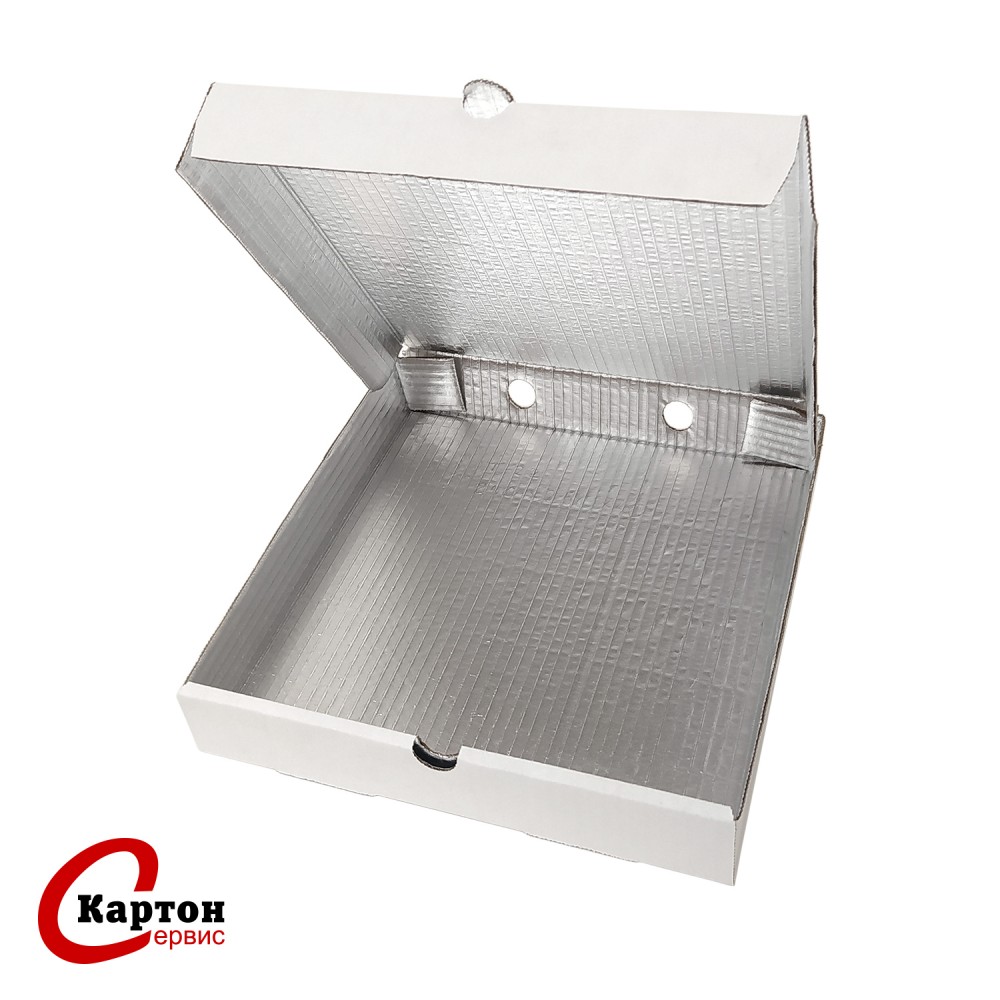 На сегодняшний день самая популярная упаковка для транспортировки горячей пиццы и пирогов – коробка из гофрированного картона. Главная задача, которую выполняют коробки для пиццы – это удобство транспортировки и сохранение товарного вида продукта. В то же время коробка с нанесенным изображением методом флексопечати служит рекламным носителем, работая на узнавание бренда. Упаковка из ламинированного гофрокартона поможет сохранить температуру продукта. Жир и влага не проникнут на внешнюю сторону коробки, сохранив её привлекательный внешний вид. Кроме того, ламинированная фольгой внутренняя поверхность, является частью конструктива короба, и служит отличительным признаком, подчеркивающим уникальность упакованного продукта.