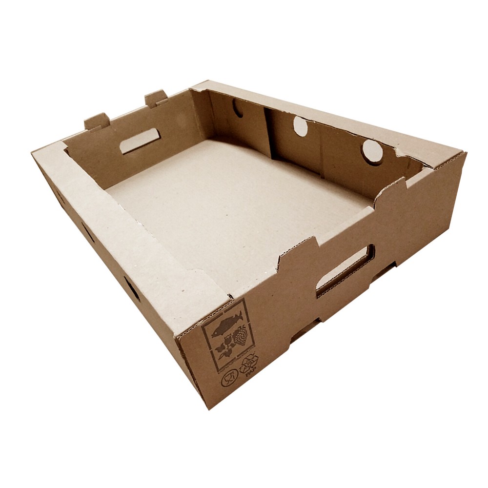 Гофролоток для охлажденных и замороженных продуктов (для мяса и птицы) - это коробка без верхней крышки с невысокими стенками. Лоток производится из трехслойного картона с одним или несколькими целлюлозными слоями для обеспечения повышенной прочности, при хранении продукции в условиях низких температур и повышенной влажности. Конструкцией лотка предусмотрены дополнительные ребра жесткости, позволяющие сохранить форму тары при больших нагрузках. Также в лотке имеются технологические отверстия, которые обеспечивают необходимый воздухообмен, проветривание продукции и используются как ручки для удобства переноски. Лотки имеют самосборную конструкцию, поставляются в виде плоских заготовок, что позволяет оптимально использовать площади для хранения, и собираются в готовый лоток непосредственно на месте упаковки.