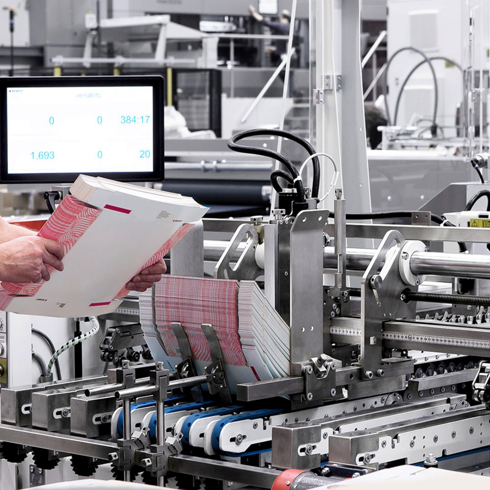 - 5 этап: с помощью специального оборудования, на которое устанавливается штамп, из цельного листа высекается созданный контур, наносятся биговки и перфорация, после чего удаляется весь лишний материал.